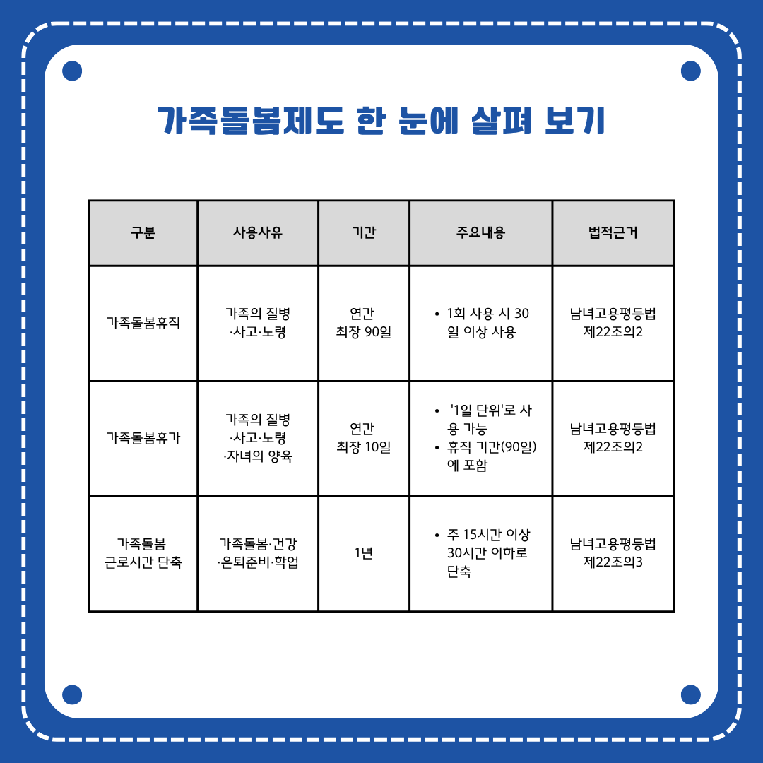 [예담카드뉴스] ep.4 가족돌봄제도 주요내용 알아보기